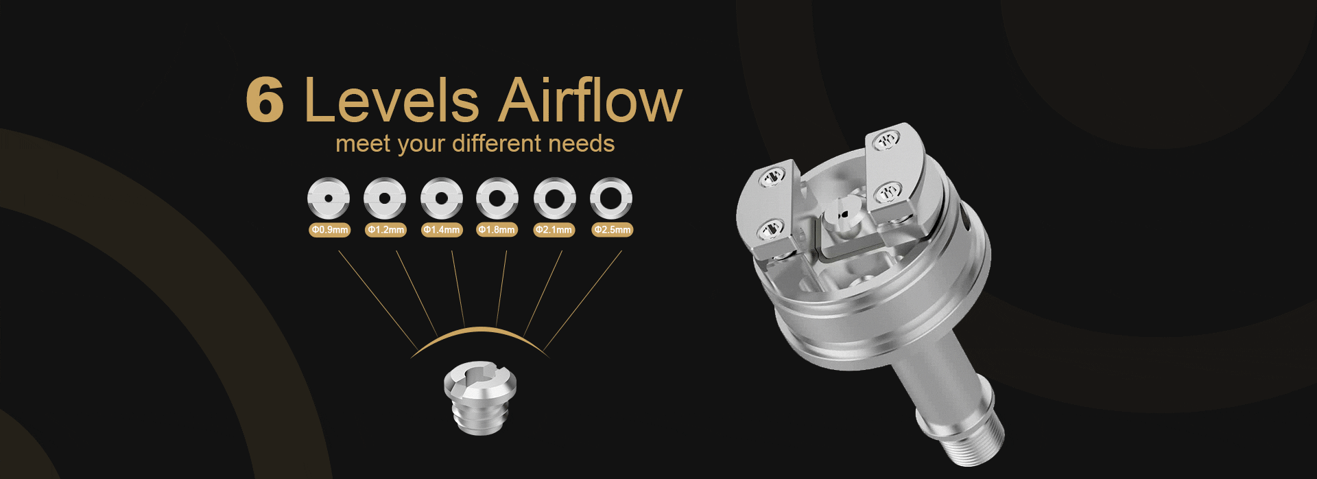 Con il pin di regolazione dell'aria puoi regolare la resistenza al tiro. Grazie alle diverse dimensioni, il Brunhilde può essere utilizzato per uno svapo da MTL molto stretto fino a DL restrittivo.�